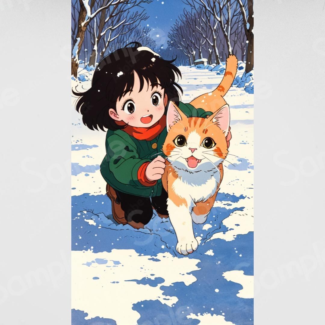 猫ちゃんレトロアニメイラスト☆スマホ壁紙堂N103